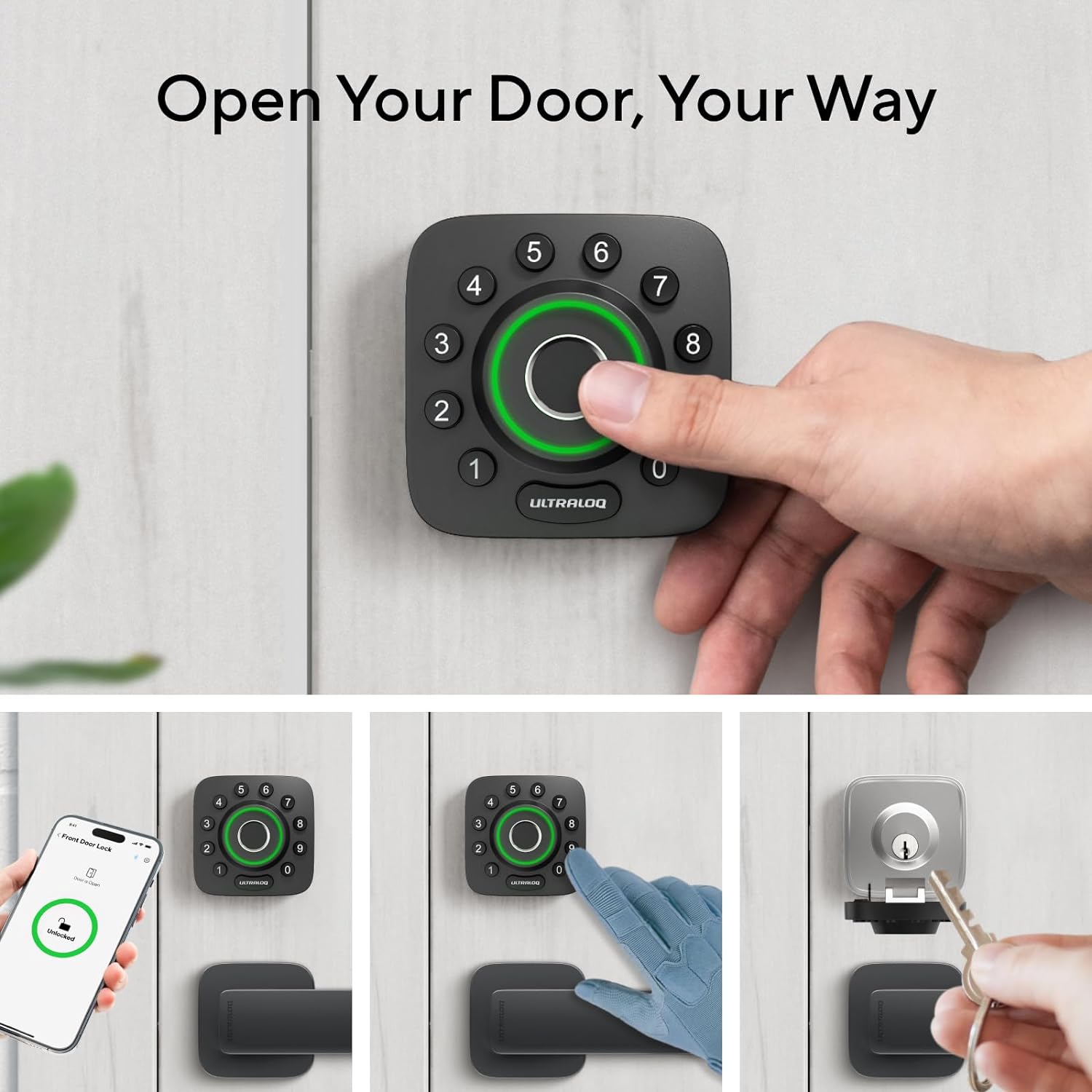 ULTRALOQ Smart Locks for Front Door – U-Bolt Pro WiFi Smart Door Lock with Handle Set, Fingerprint Keyless Entry Door Lock with Door Sensor, Smart Exterior Front Door Lock Set, Built-in WiFi Deadbolt